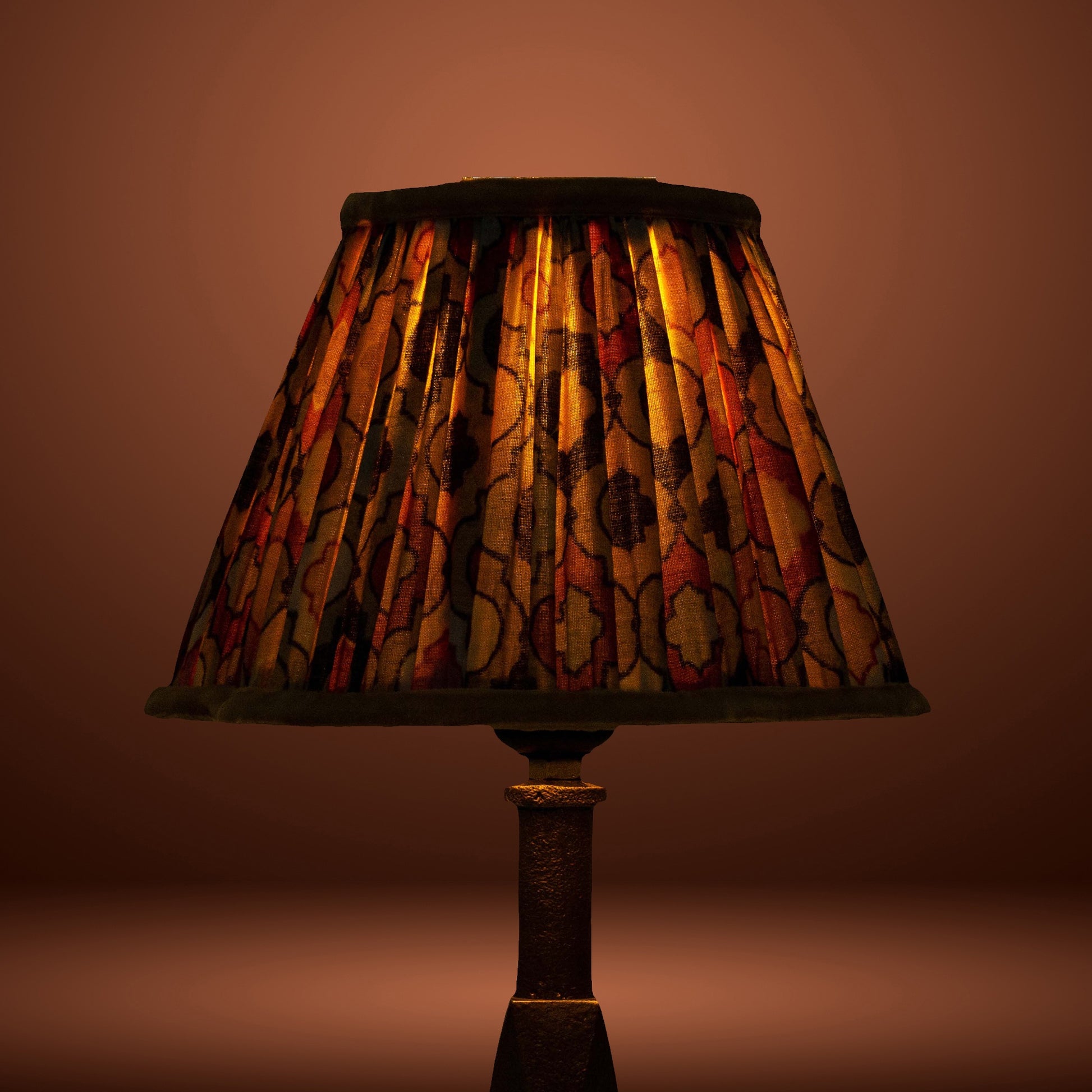 A softback printed cotton shade handmade by incredibly skilled craftswoman. This is a 20cm size (bottom diameter) lampshade which is designed to work with a British (B22) or European (E27/E14) bulb holder. We also provide a reducer ring that allows shades to sit comfortably on a B22 holder. If it is E27/E14, simply push out the reducer. This lampshade can be used on top of table lamps or floor lamps. Our shades are completely handmade and yet of top quality, eco-friendly, and of course 100% made in India. Dimensions (cms) : Top - 10, Bottom- 20, Height - 13