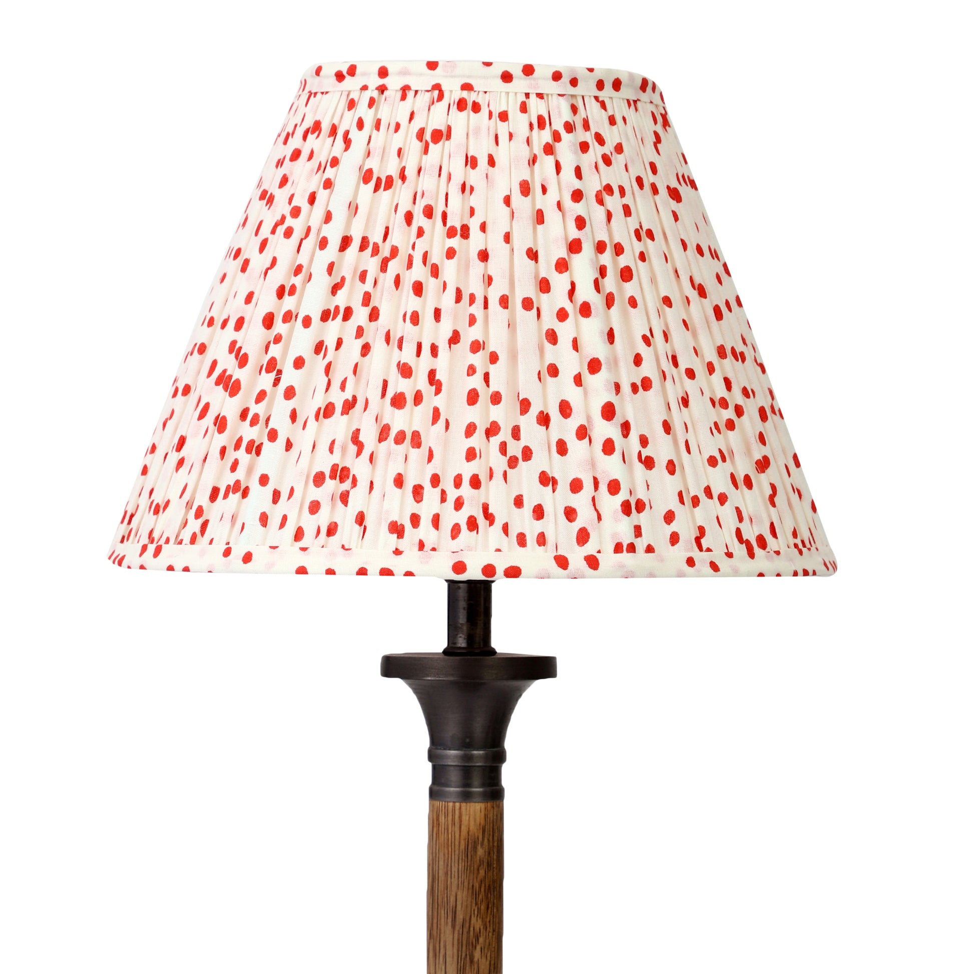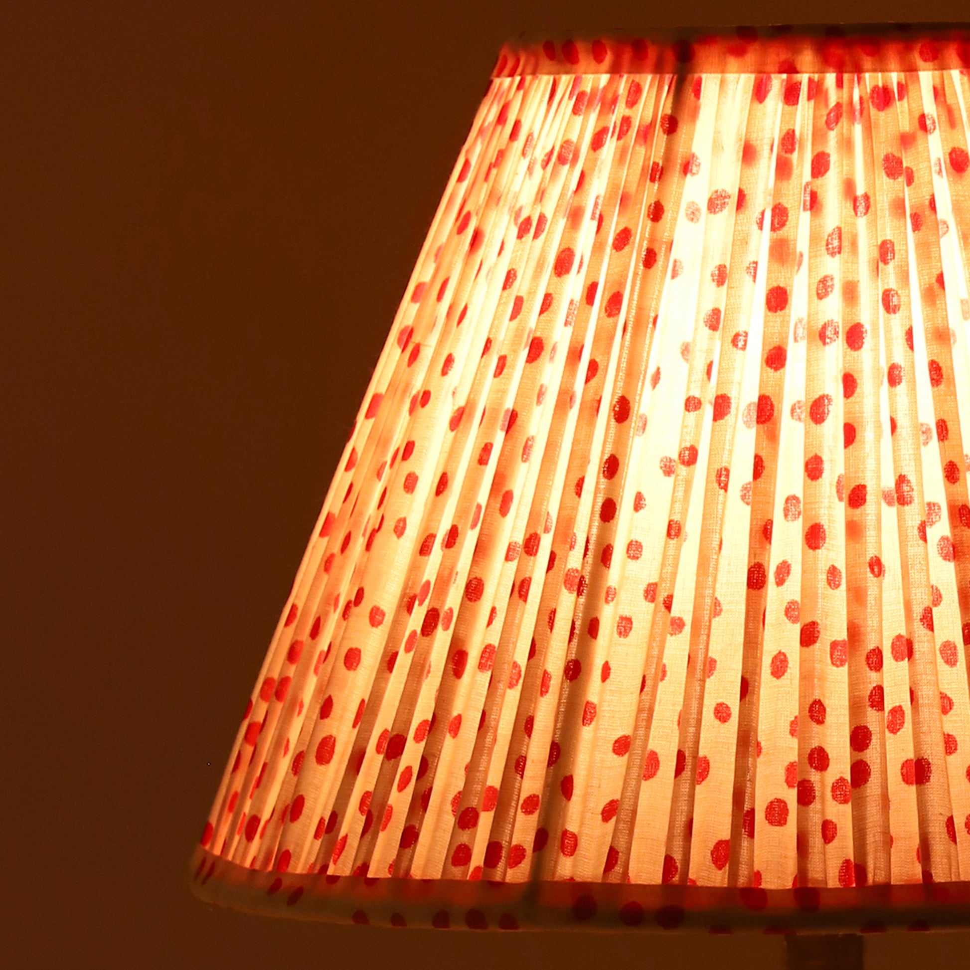 A softback printed cotton shade handmade by incredibly skilled craftswoman. This is a 20cm size (bottom diameter) lampshade which is designed to work with a British (B22) or European (E27/E14) bulb holder. We also provide a reducer ring that allows shades to sit comfortably on a B22 holder. If it is E27/E14, simply push out the reducer. This lampshade can be used on top of table lamps or floor lamps. Our shades are completely handmade and yet of top quality, eco-friendly, and of course 100% made in India. Dimensions (cms) : Top - 10, Bottom- 20, Height - 13