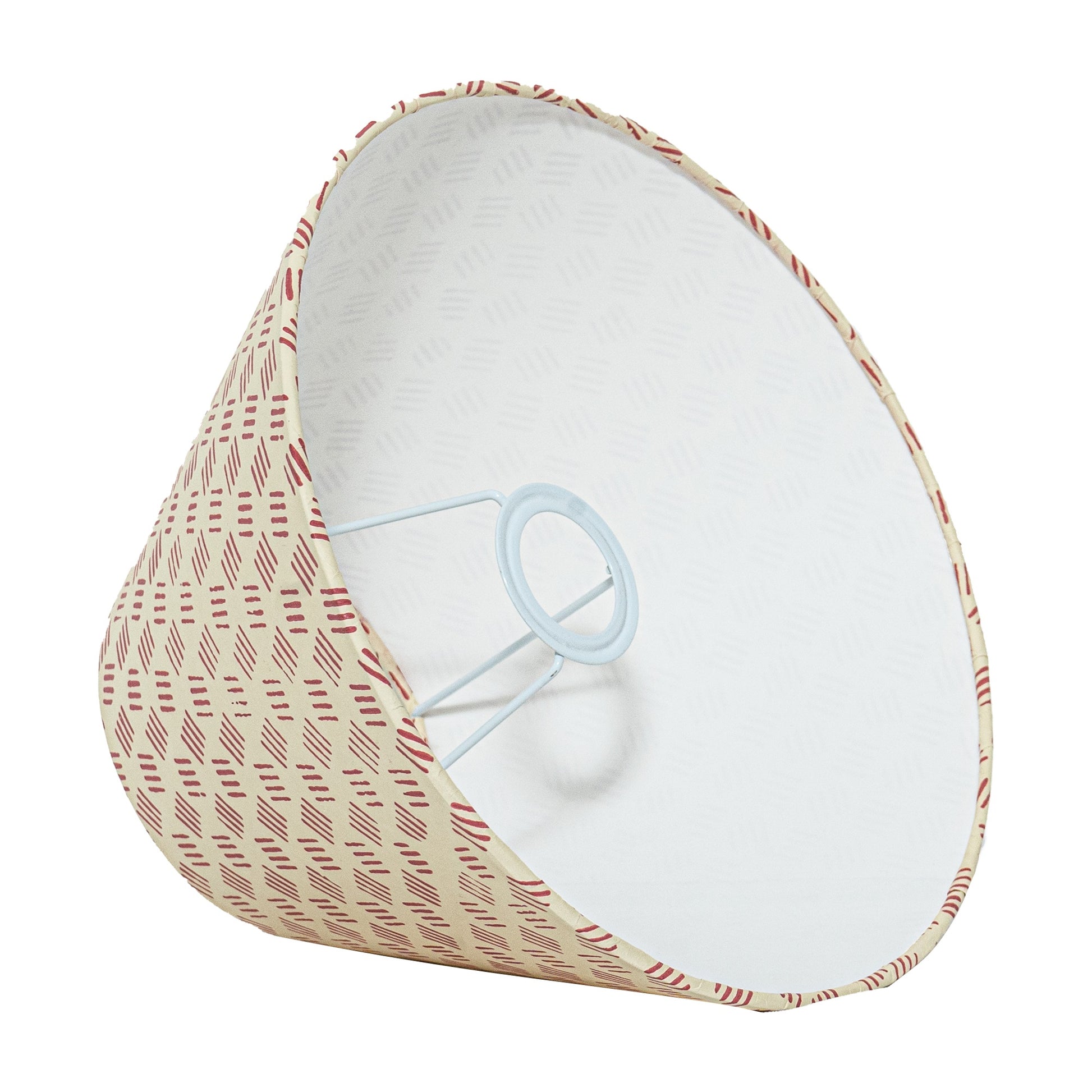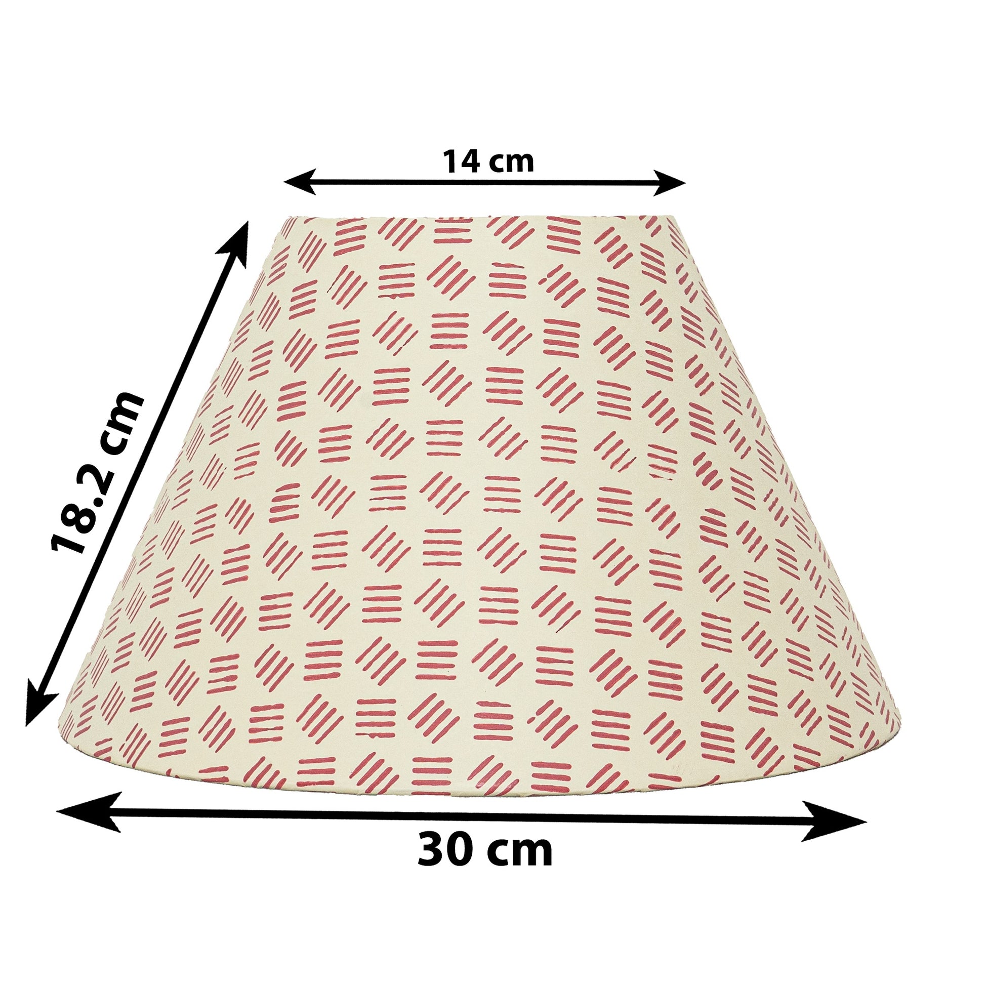 A hardback premium block printed paper shade handmade by incredibly skilled craftswoman. This is a 30cm size (bottom diameter) lampshade which is designed to work with a British (B22) or European (E27/E14) bulb holder. We also provide a reducer ring that allows shades to sit comfortably on a B22 holder. If it is E27/E14, simply push out the reducer. This lampshade can be used as pendant/hanging or on top of table lamps/floor lamps. Our shades are completely handmade and yet of top quality, eco-friendly, and of course 100% made in India. Dimensions (cms) : Top - 14, Bottom- 30, Height - 18.2