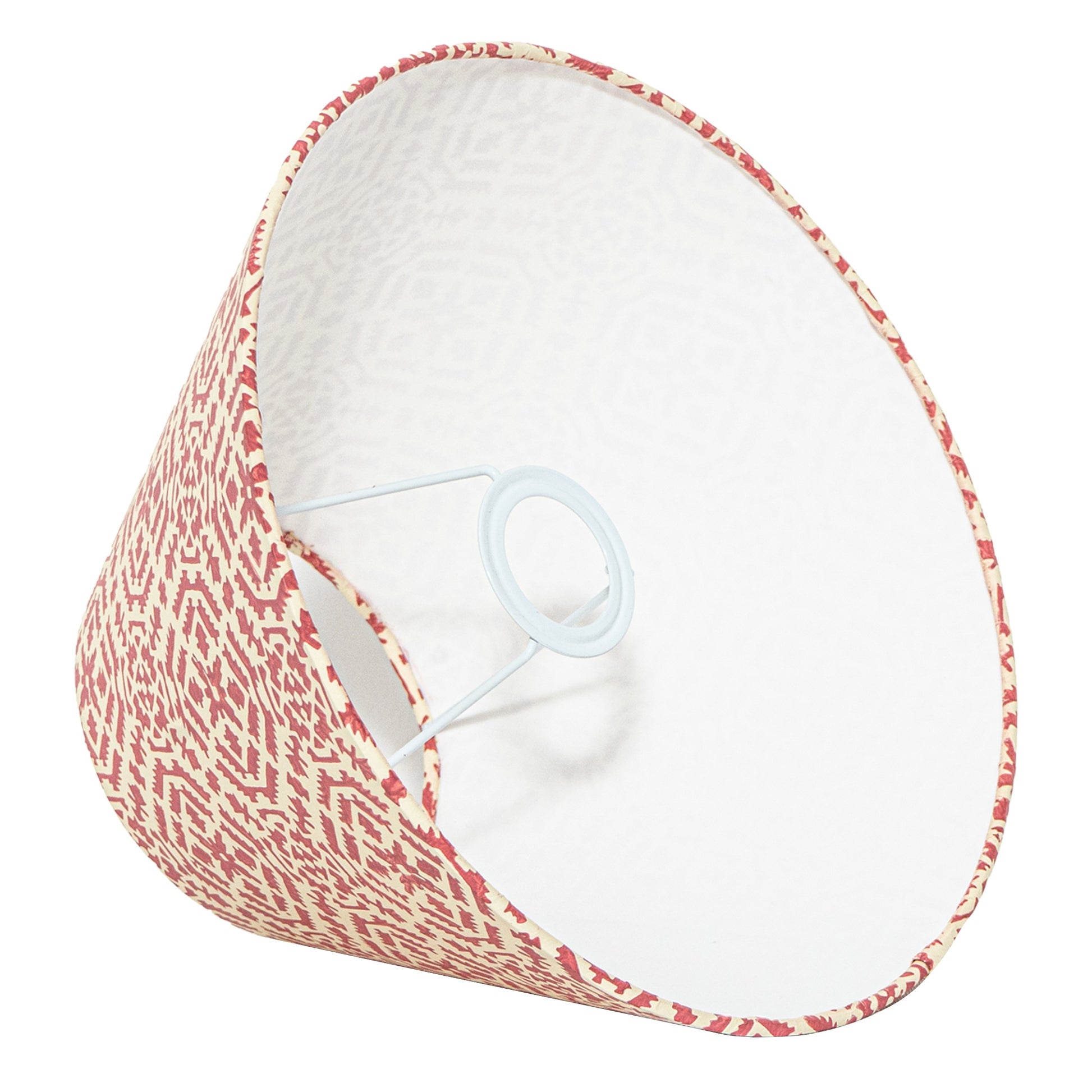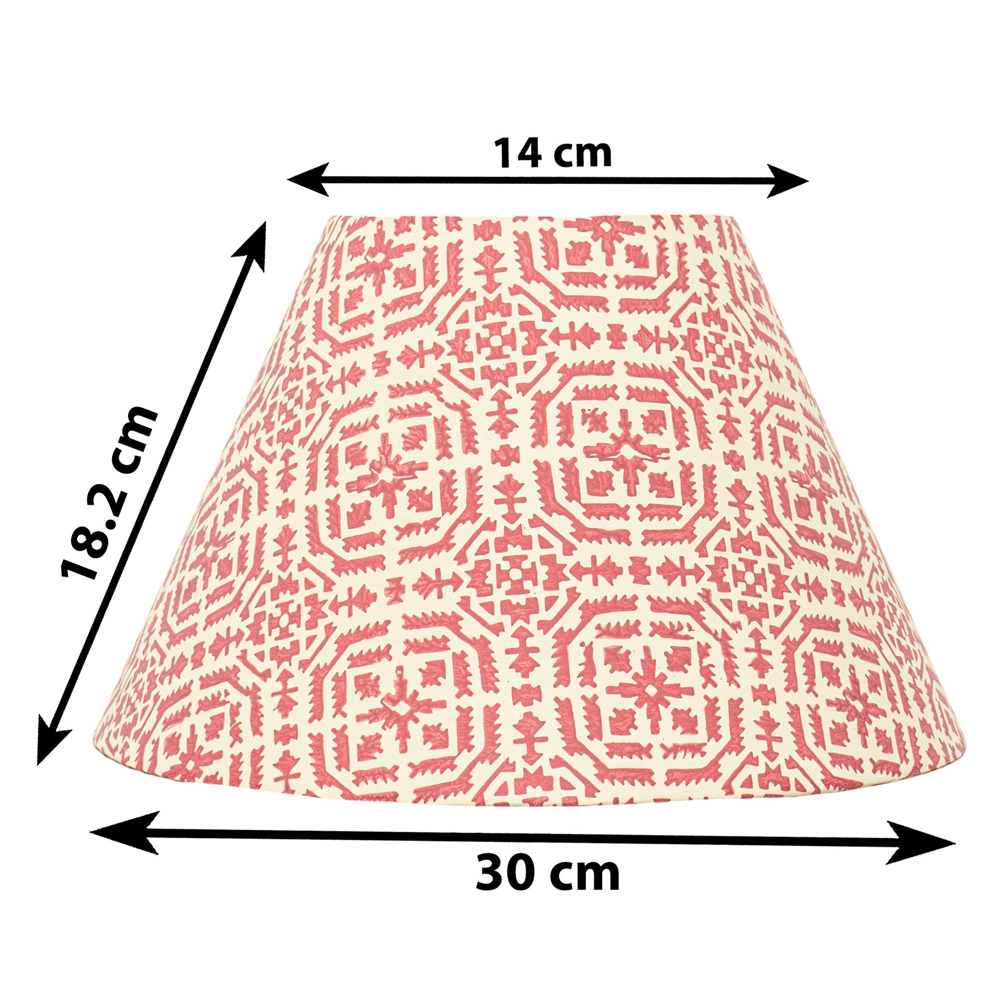 A hardback premium block printed paper shade handmade by incredibly skilled craftswoman. This is a 30cm size (bottom diameter) lampshade which is designed to work with a British (B22) or European (E27/E14) bulb holder. We also provide a reducer ring that allows shades to sit comfortably on a B22 holder. If it is E27/E14, simply push out the reducer. This lampshade can be used as pendant/hanging or on top of table lamps/floor lamps. Our shades are completely handmade and yet of top quality, eco-friendly, and of course 100% made in India. Dimensions (cms) : Top - 14, Bottom- 30, Height - 18.2