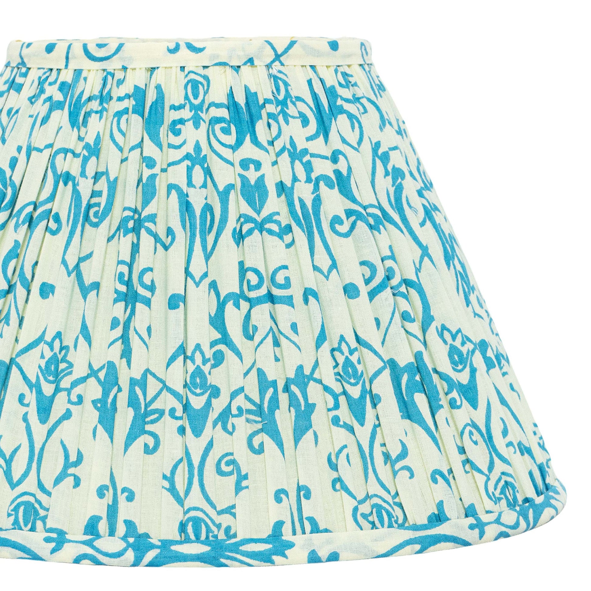 A softback printed cotton shade handmade by incredibly skilled craftswoman. This is a 30cm size (bottom diameter) lampshade which is designed to work with a British (B22) or European (E27/E14) bulb holder. We also provide a reducer ring that allows shades to sit comfortably on a B22 holder. If it is E27/E14, simply push out the reducer. This lampshade can be used as pendant/hanging or on top of table lamps/floor lamps. Our shades are completely handmade and yet of top quality, eco-friendly, and of course 100% made in India. Dimensions (cms) : Top - 14, Bottom- 30, Height - 18.2
