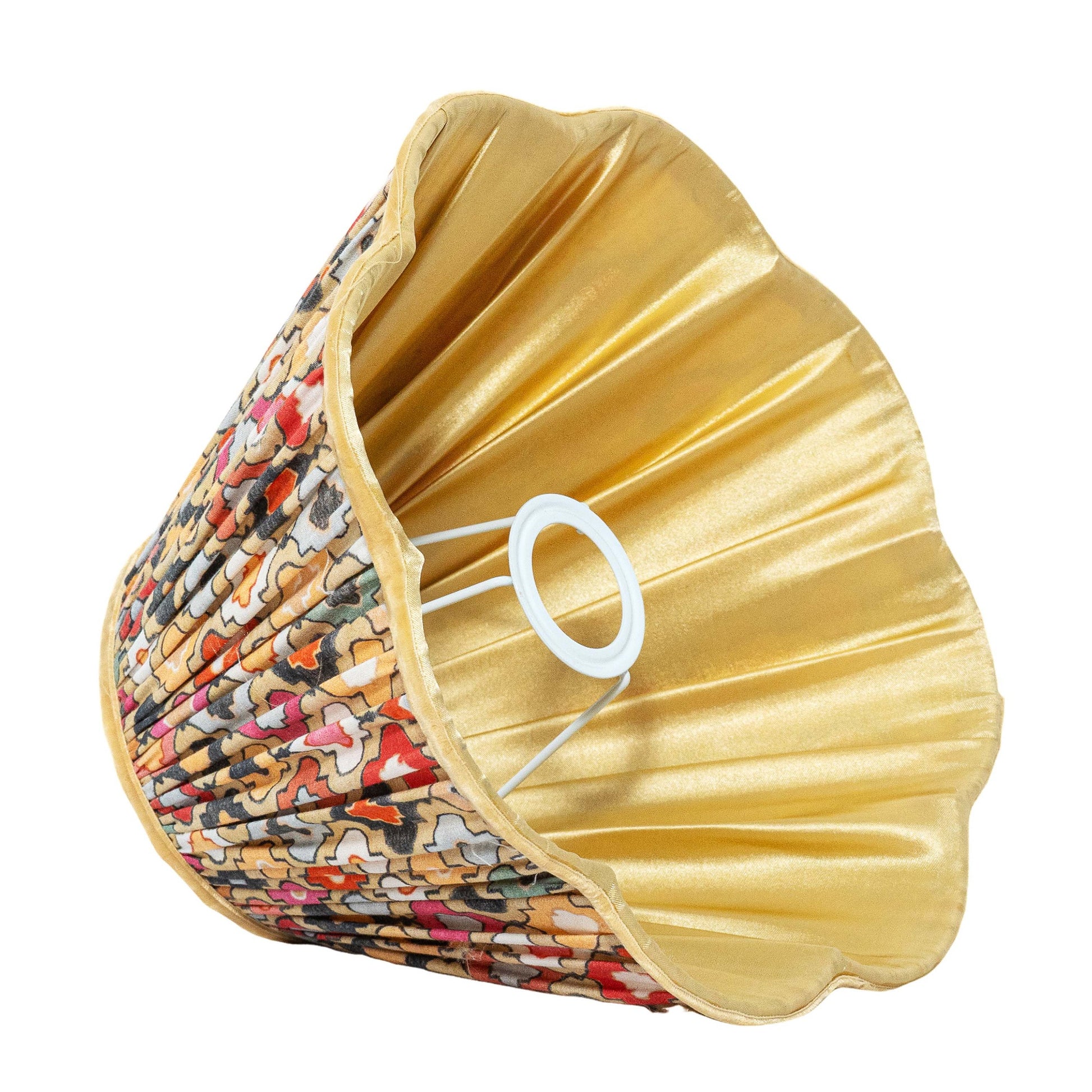 A softback printed cotton shade handmade by incredibly skilled craftswoman. This is a 30cm size (bottom diameter) lampshade which is designed to work with a British (B22) or European (E27/E14) bulb holder. We also provide a reducer ring that allows shades to sit comfortably on a B22 holder. If it is E27/E14, simply push out the reducer. This lampshade can be used as pendant/hanging or on top of table lamps/floor lamps. Our shades are completely handmade and yet of top quality, eco-friendly, and of course 100% made in India. Dimensions (cms) : Top - 14, Bottom- 30, Height - 18.2
