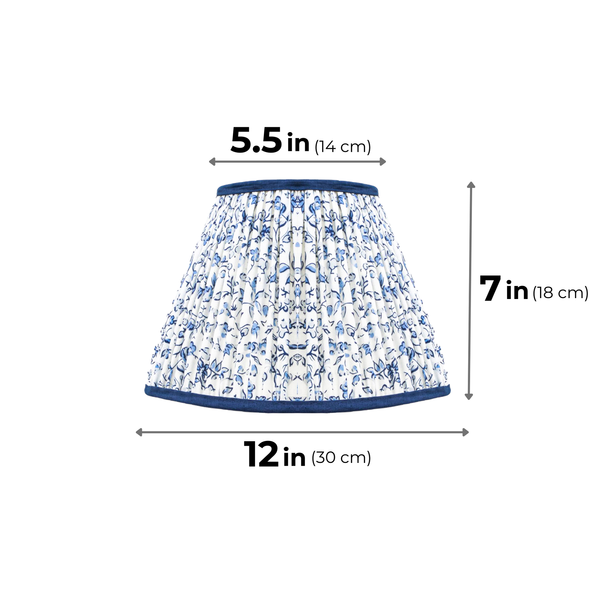 A softback printed cotton shade handmade by incredibly skilled craftswoman. This is a 30cm size (bottom diameter) lampshade which is designed to work with a British (B22) or European (E27/E14) bulb holder. We also provide a reducer ring that allows shades to sit comfortably on a B22 holder. If it is E27/E14, simply push out the reducer. This lampshade can be used as pendant/hanging or on top of table lamps/floor lamps. Our shades are completely handmade and yet of top quality, eco-friendly, and of course 100% made in India. Dimensions (cms) : Top - 14, Bottom- 30, Height - 18.2