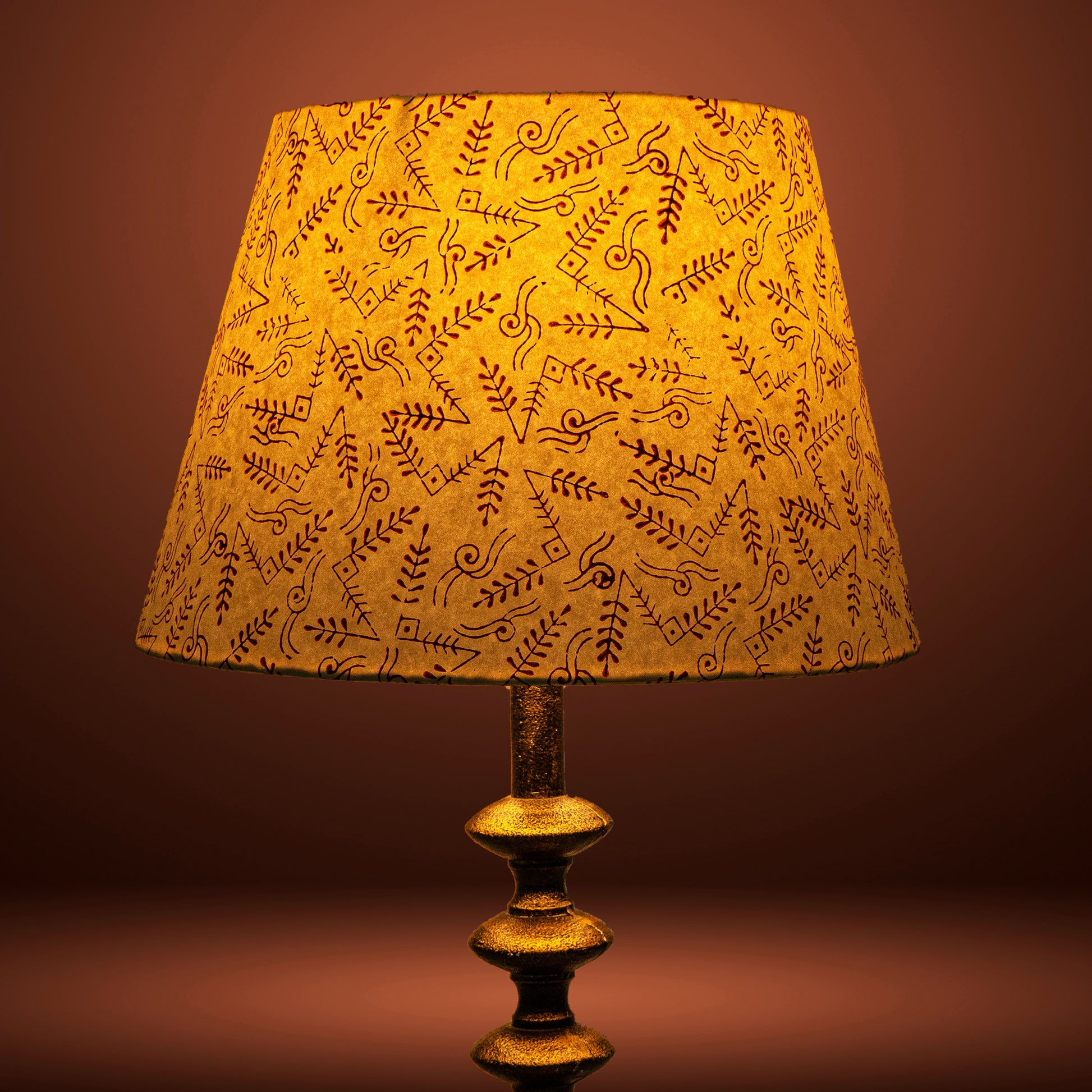 A hardback premium block printed paper shade handmade by incredibly skilled craftswoman. This is a 30cm size (bottom diameter) lampshade which is designed to work with a British (B22) or European (E27/E14) bulb holder. We also provide a reducer ring that allows shades to sit comfortably on a B22 holder. If it is E27/E14, simply push out the reducer. This lampshade can be used as pendant/hanging or on top of table lamps/floor lamps. Our shades are completely handmade and yet of top quality, eco-friendly, and of course 100% made in India. Dimensions (cms) : Top - 20, Bottom- 30, Height - 20