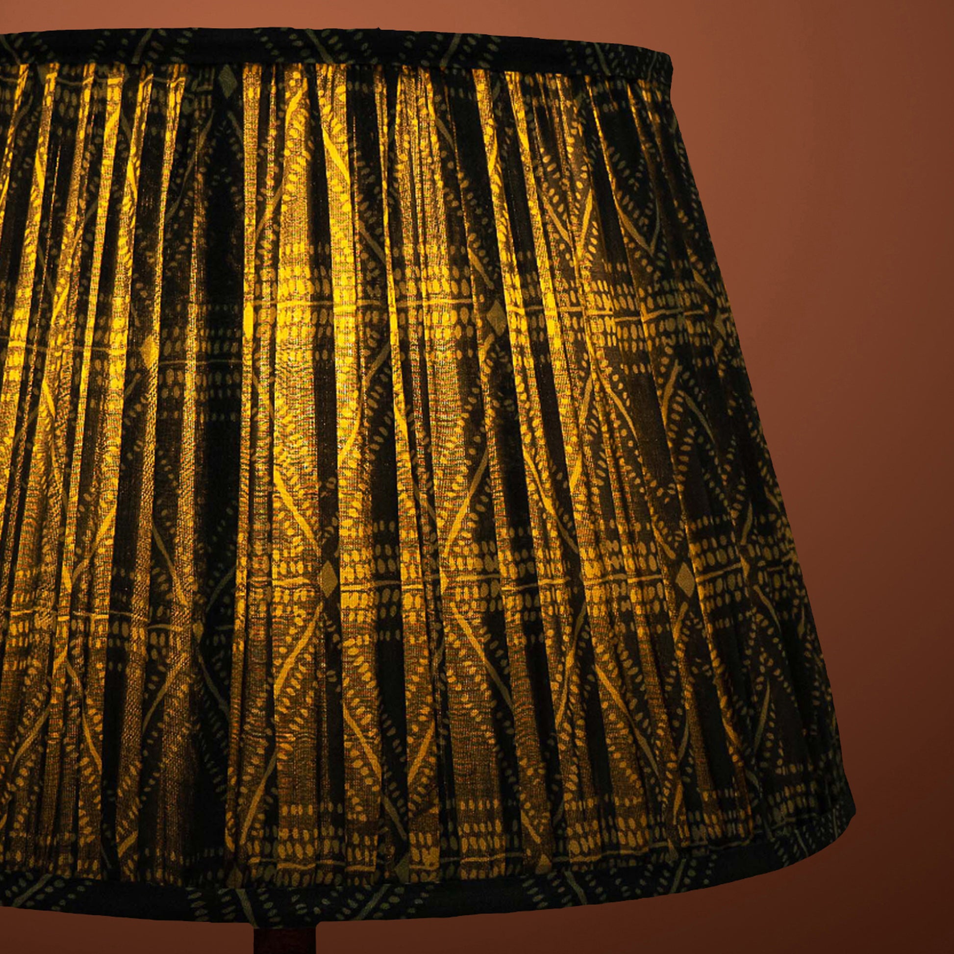 A softback printed cotton shade handmade by incredibly skilled craftswoman. This is a 30cm size (bottom diameter) lampshade which is designed to work with a British (B22) or European (E27/E14) bulb holder. We also provide a reducer ring that allows shades to sit comfortably on a B22 holder. If it is E27/E14, simply push out the reducer. This lampshade can be used as pendant/hanging or on top of table lamps/floor lamps. Our shades are completely handmade and yet of top quality, eco-friendly, and of course 100% made in India. Dimensions (cms) : Top - 20, Bottom- 30, Height - 20