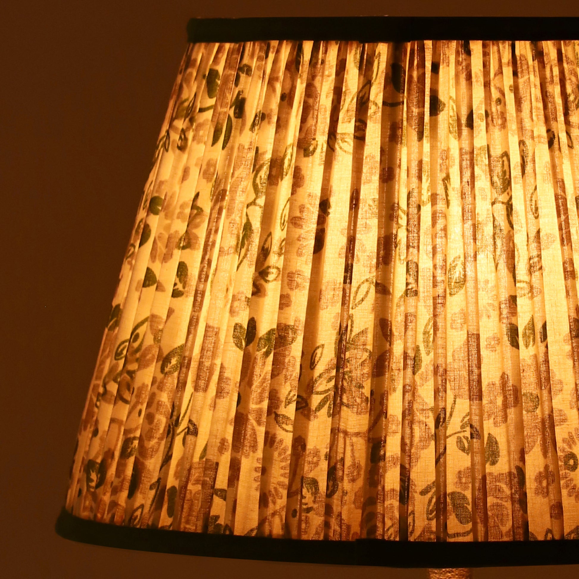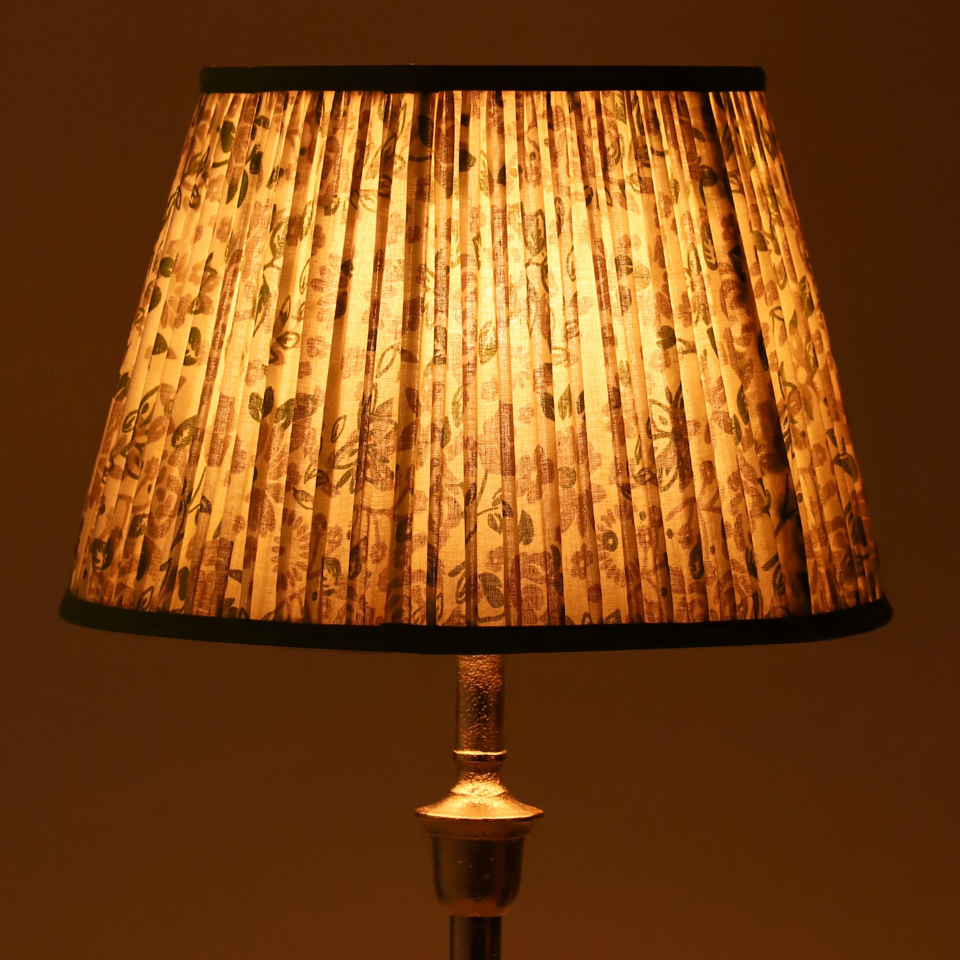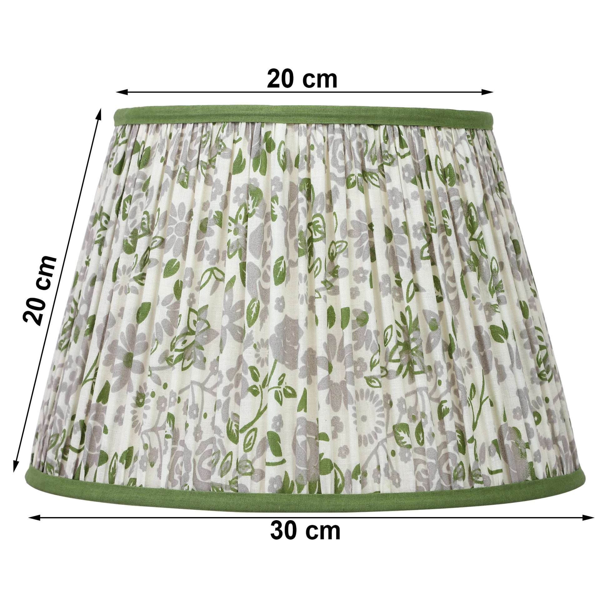 A softback printed cotton shade handmade by incredibly skilled craftswoman. This is a 30cm size (bottom diameter) lampshade which is designed to work with a British (B22) or European (E27/E14) bulb holder. We also provide a reducer ring that allows shades to sit comfortably on a B22 holder. If it is E27/E14, simply push out the reducer. This lampshade can be used as pendant/hanging or on top of table lamps/floor lamps. Our shades are completely handmade and yet of top quality, eco-friendly, and of course 100% made in India. Dimensions (cms) : Top - 20, Bottom- 30, Height - 20