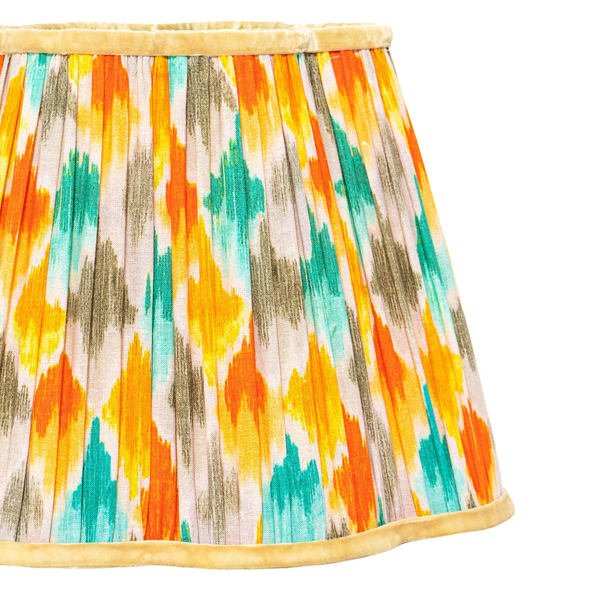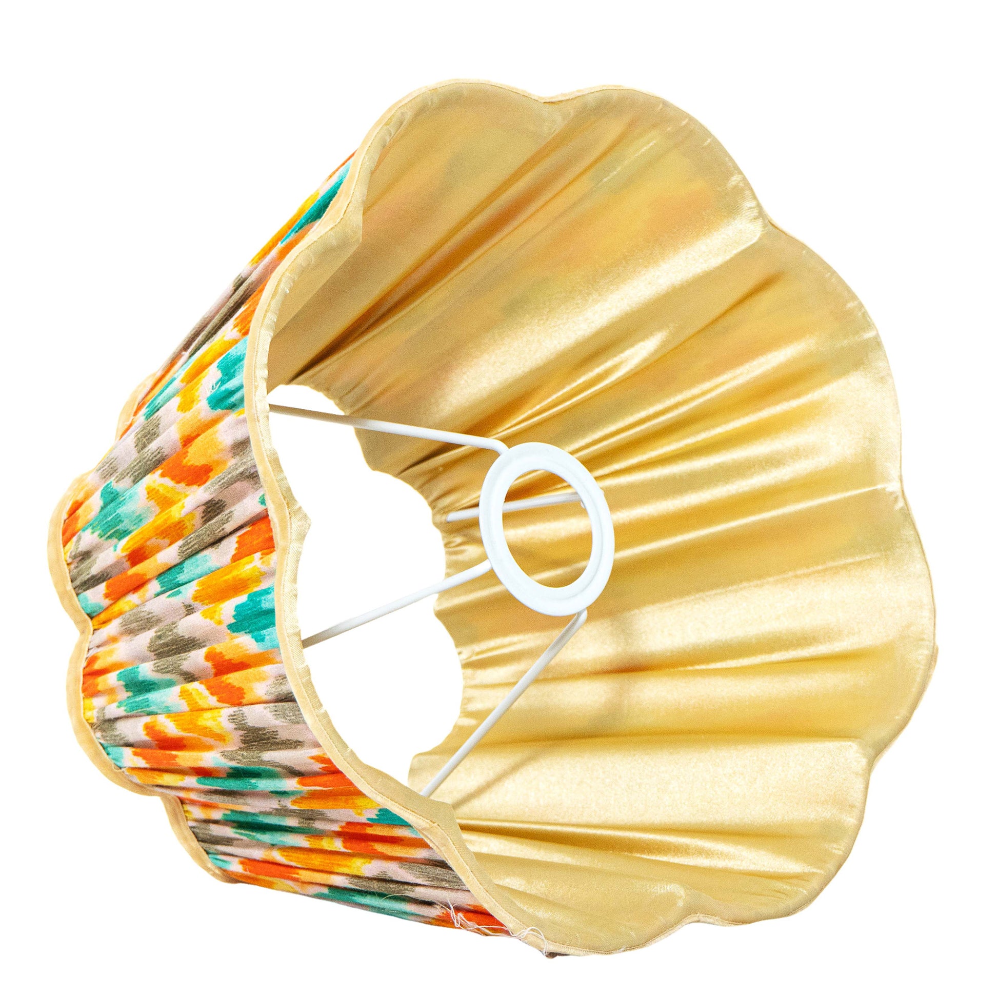 A softback printed cotton shade handmade by incredibly skilled craftswoman. This is a 30cm size (bottom diameter) lampshade which is designed to work with a British (B22) or European (E27/E14) bulb holder. We also provide a reducer ring that allows shades to sit comfortably on a B22 holder. If it is E27/E14, simply push out the reducer. This lampshade can be used as pendant/hanging or on top of table lamps/floor lamps. Our shades are completely handmade and yet of top quality, eco-friendly, and of course 100% made in India. Dimensions (cms) : Top - 20, Bottom- 30, Height - 20