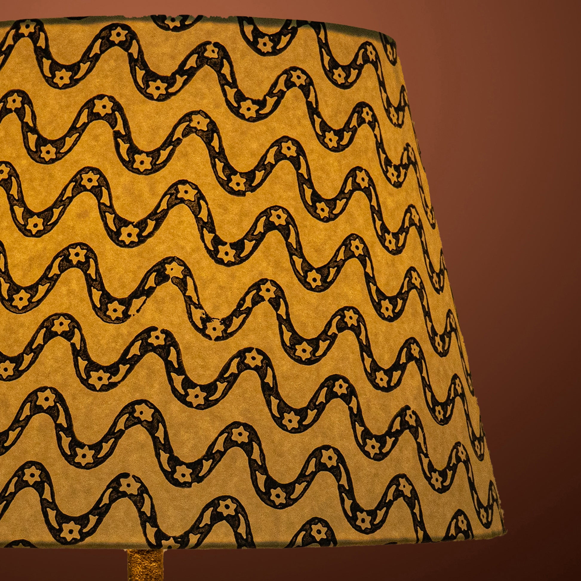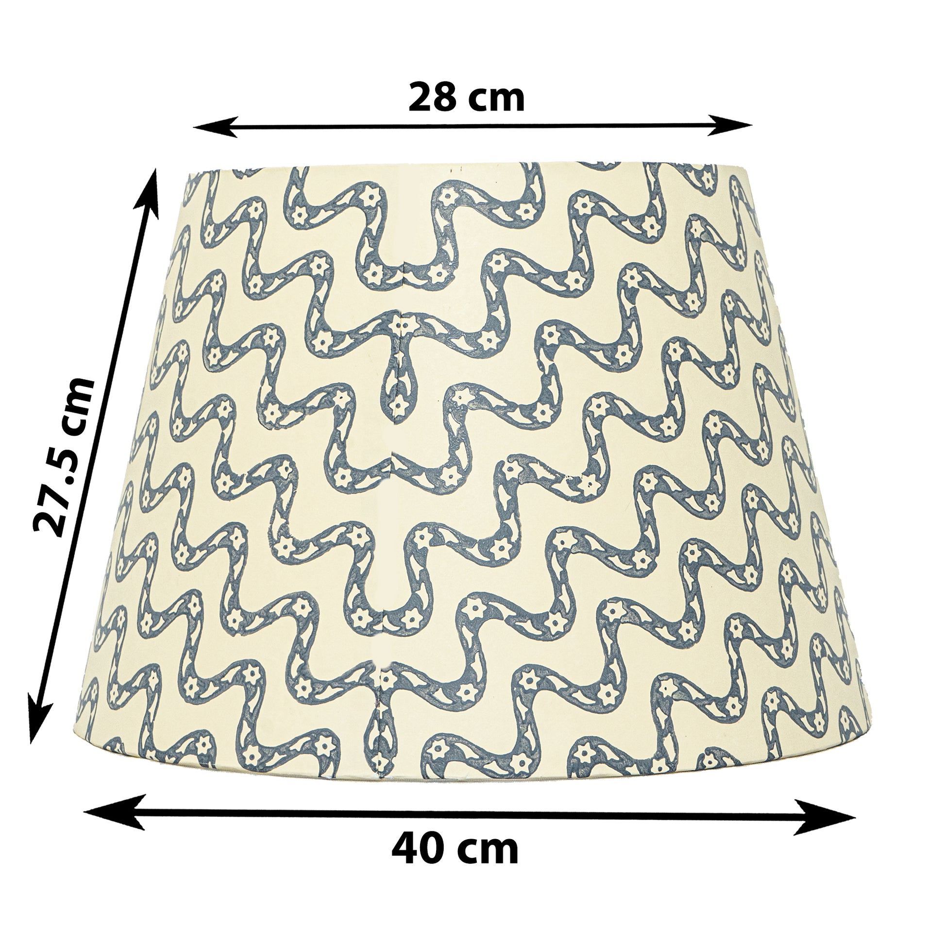 A hardback premium block printed paper shade handmade by incredibly skilled craftswoman. This is a 40cm size (bottom diameter) lampshade which is designed to work with a British (B22) or European (E27/E14) bulb holder. We also provide a reducer ring that allows shades to sit comfortably on a B22 holder. If it is E27/E14, simply push out the reducer. This lampshade can be used as pendant/hanging or on top of table lamps/floor lamps. Our shades are completely handmade and yet of top quality, eco-friendly, and of course 100% made in India. Dimensions (cms) : Top - 28, Bottom- 40, Height - 27.5