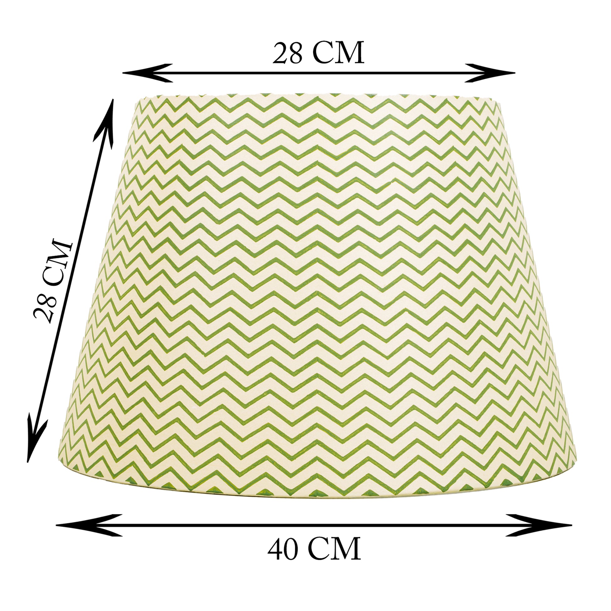 A hardback premium block printed paper shade handmade by incredibly skilled craftswoman. This is a 40cm size (bottom diameter)  lampshade which is designed to work with a British (B22) or European (E27/E14) bulb holder. We also provide a reducer ring that allows shades to sit comfortably on a B22 holder. If it is E27/E14, simply push out the reducer. This lampshade can be used as pendant/hanging or on top of table lamps/floor lamps. Our shades are completely handmade and yet of top quality, eco-friendly, and of course 100% made in India. Dimensions (cms) : Top - 28, Bottom- 40, Height - 27.5