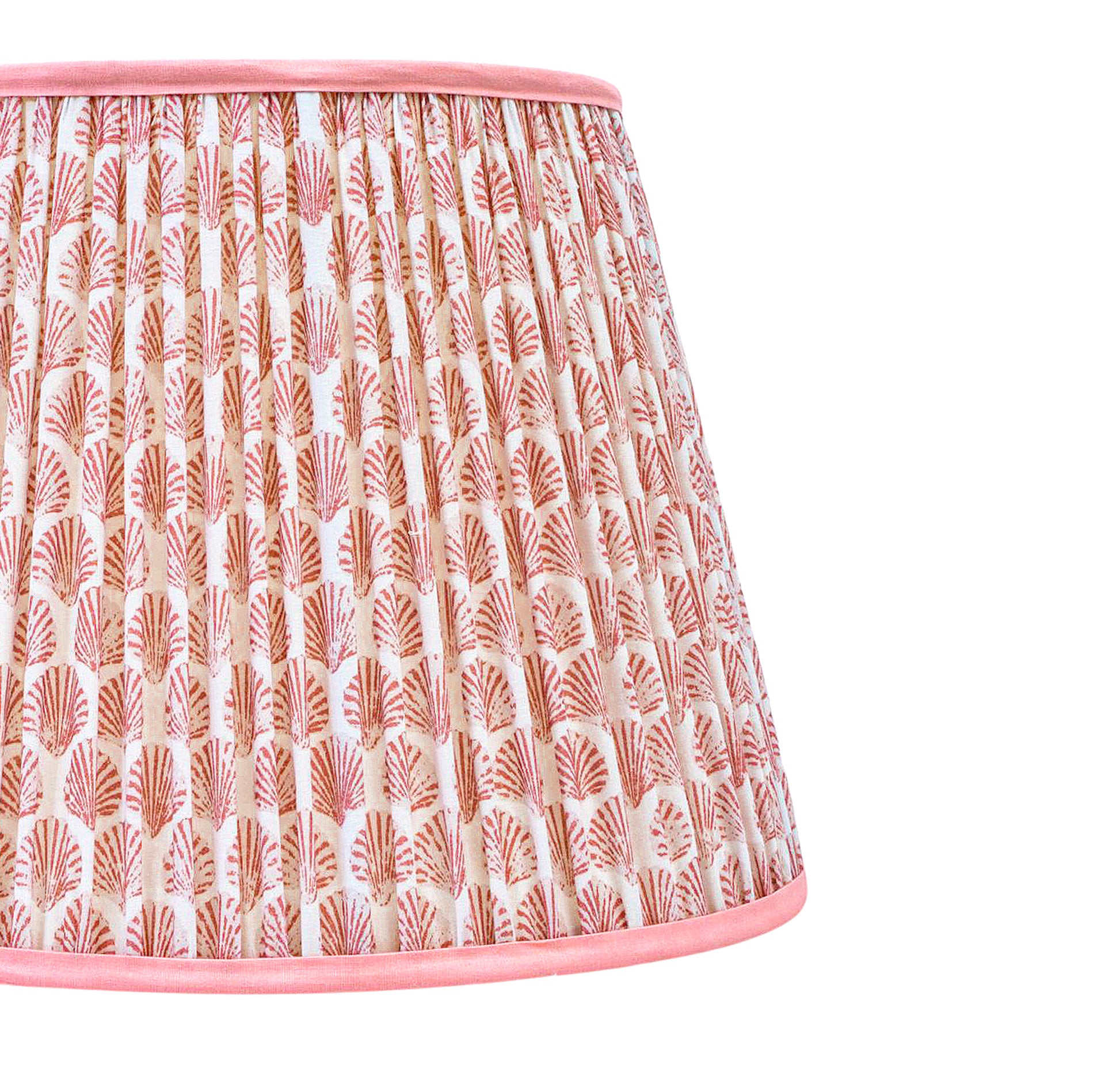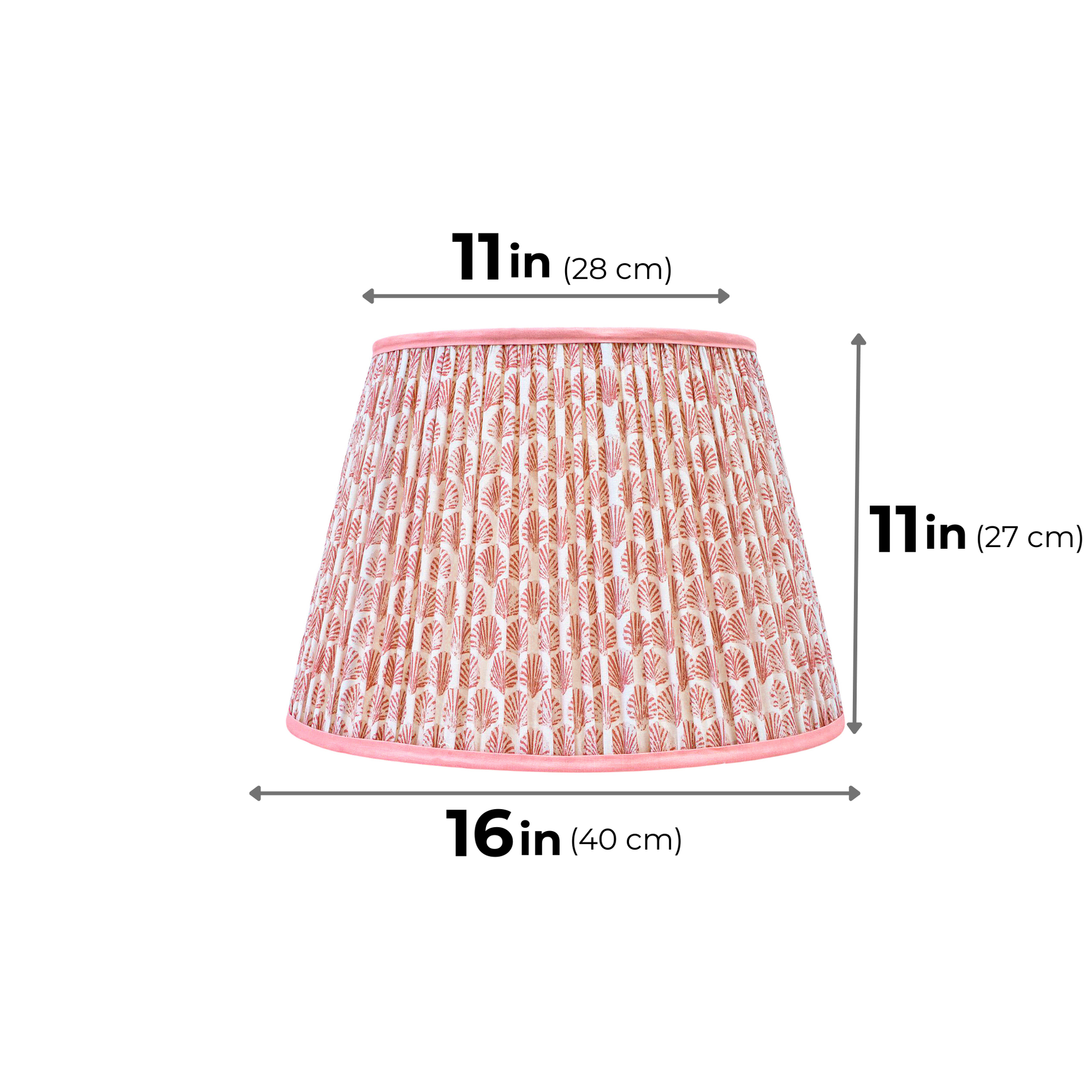 A softback printed cotton shade handmade by incredibly skilled craftswoman. This is a 40cm size (bottom diameter) lampshade which is designed to work with a British (B22) or European (E27/E14) bulb holder. We also provide a reducer ring that allows shades to sit comfortably on a B22 holder. If it is E27/E14, simply push out the reducer. This lampshade can be used as pendant/hanging or on top of table lamps/floor lamps. Our shades are completely handmade and yet of top quality, eco-friendly, and of course 100% made in India. Dimensions (cms) : Top - 28, Bottom- 40, Height - 27.5