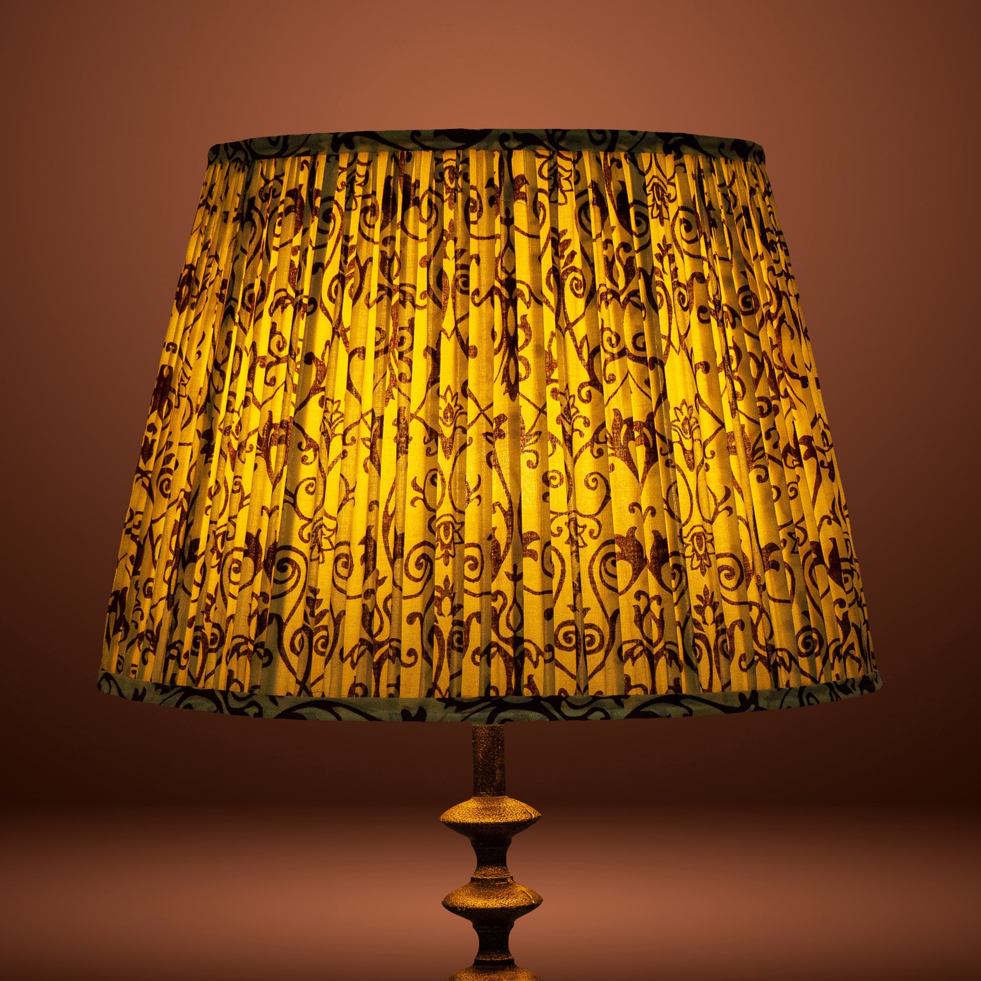 A softback printed cotton shade handmade by incredibly skilled craftswoman. This is a 40cm size (bottom diameter) lampshade which is designed to work with a British (B22) or European (E27/E14) bulb holder. We also provide a reducer ring that allows shades to sit comfortably on a B22 holder. If it is E27/E14, simply push out the reducer. This lampshade can be used as pendant/hanging or on top of table lamps/floor lamps. Our shades are completely handmade and yet of top quality, eco-friendly, and of course 100% made in India. Dimensions (cms) : Top - 28, Bottom- 40, Height - 27.5