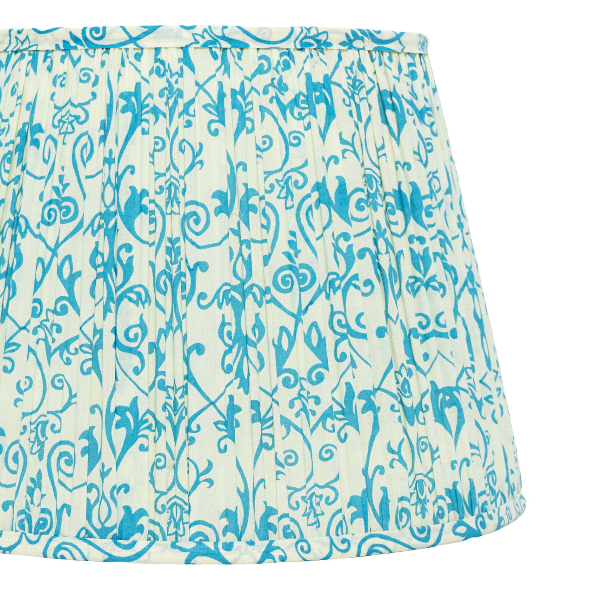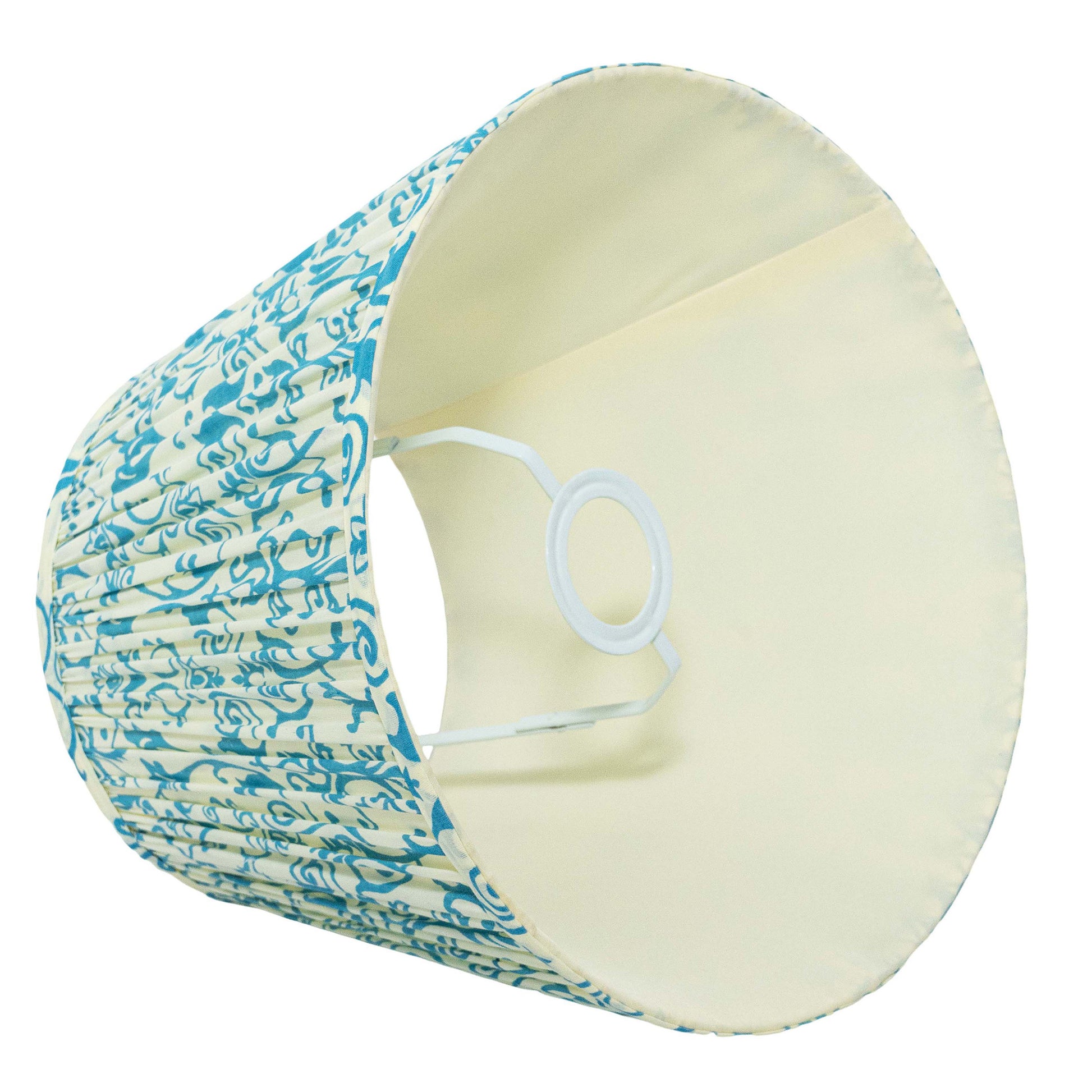 A softback printed cotton shade handmade by incredibly skilled craftswoman. This is a 40cm size (bottom diameter) lampshade which is designed to work with a British (B22) or European (E27/E14) bulb holder. We also provide a reducer ring that allows shades to sit comfortably on a B22 holder. If it is E27/E14, simply push out the reducer. This lampshade can be used as pendant/hanging or on top of table lamps/floor lamps. Our shades are completely handmade and yet of top quality, eco-friendly, and of course 100% made in India. Dimensions (cms) : Top - 28, Bottom- 40, Height - 27.5