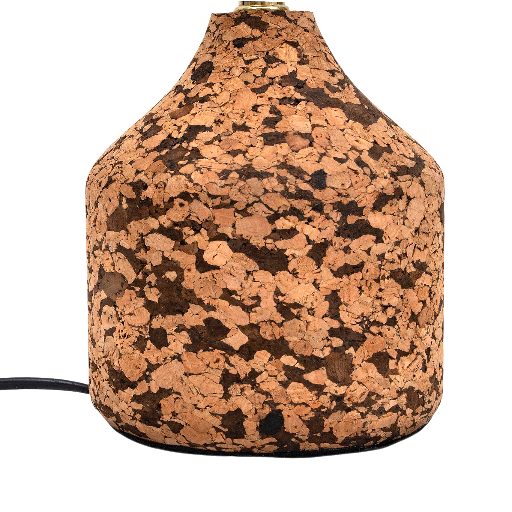 Elevate your space with our handcrafted table lamp, featuring a cylindrical cork base with a distinctive choco-chip texture. The base gently curves inward at the top, creating a graceful, sculptural silhouette. Designed with sustainable luxury in mind, this lamp combines natural materials with timeless elegance, casting a warm and inviting glow that enhances any room.